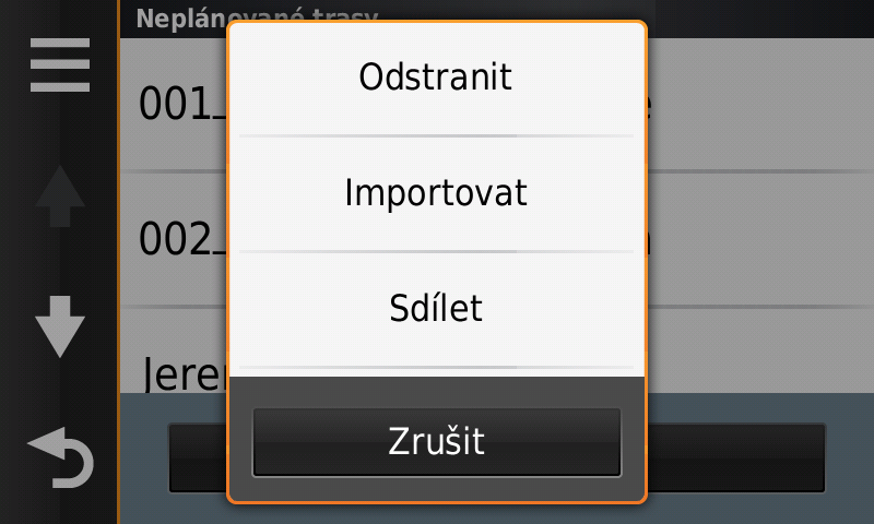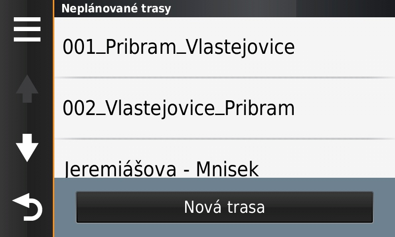 Zumo 590 je dozajista chytřejší, rychlejší, má větší paměť, ale také složitější. Pro ilustraci výběr uložené trasy.