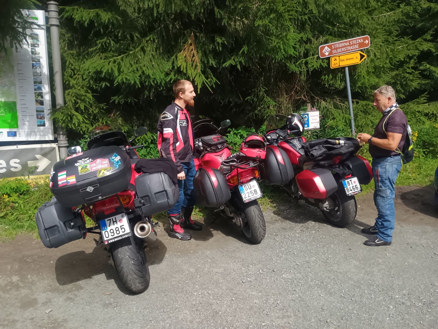 Dnes věnuji své vzpomínky dle mého povedené akci-tripu členů Vefroklubu v srpnu 2025. Operační oblastí se měl stát region Vefru zaslíbený-Krušné hory. Možná se vám to bude zdát přehnané, ale Krušky jsou pro motorkáře unikátní. Díky průmyslové historii této oblasti jsou silnice v parádní kvalitě i na hřebenech hor a taky relativně malý provoz v kombinaci s parádními výhledy do dalekého okolí vám vykouzlí na tváři rohlík. Měl jsem už dlouho v plánu exkurzi do elektrárny Ledvice a návštěvu dalších zajímavostí v okolí, tak jsem to nabídl i klubovým kolegům. Původně jsem měl představu o večerním focení z této nejvyšší rozhledny v ČR (někde jsem o téhle možnosti četl a lákalo mne to vidět), ale info z infocentra ČEZu mne vrátilo na zem. Večerní prohlídky neděláme. Takže nakonec se ten program vykrystalizoval sám. V sobotu dopoledne elektrárna, pak železniční depo NTM v Chomutově a v neděli dopoledne prohlídka středověké štoly Johannes, kousek od Božího Daru. Předběžně jsem měl akci domluvenu s Dvořim, nikdo jiný z klubu zájem neměl. Cca týden před tripem se mi ozval Wolfík, vysvětlil jsem mu situaci se vstupenkami na exkurzi do elektrárny. Mají zde na prohlídku v provozu dvakrát do měsíce v sobotu v lichém týdnu a omezený počet osob ve skupině na 10 duší. Tudíž nemohu zaručit, zda ještě budou volné lístky na prohlídku provozu. Ten náš okruh se jmenoval Exkurze pro energetické nadšence (délka prohlídky 3 hodiny) a lístky jsem pořizoval asi 6 neděl předem. A dobře jsem udělal. Někdy 3 nebo 4 dny před prohlídkou mi ještě volal kamarád, nečlen Vefroklubu. Zda by se mohl přidat taky. Bohužel lístky do našeho prohlídkového okruhu elektrárnou už nebyly, Wolfík to vzal sportovně a spokojil se s náhradním okruhem, kolega z okolí to zabalil rovnou. Už zbývalo pořešit ubytko. Vzpomenul jsem si na doporučení kamaráda Iva, se kterým se jezdím sklouznout na autodrom v Mostě. Dal mi tip kde nocuje on, protože je to rodák z F-M a nemá to do Mostu jako já dvě a půl hodiny jízdy na motorce. Penzion, kde jsem v minulosti nocoval byl v tomto termínu již plný. Takže hotel Širák, ubytování na zajímavém místě v Mostě, kousek od zmiňovaného okruhu. Počítal jsem, že vyjedu až po čtvrté odpolední. Nebýt směru jízdy na západ, kdy vám do očí neustále pere zapadající kobliha slunka, tak mám tyhle večerní jízdy rád. Na silnicích už je většinou klid a platilo to i tento pátek. Dvoři se mi hlásil, že je na místě ještě když jsem byl v práci, Wolfík taky nehlásil žádné dopravní komplikace na cestě. Docela mne překvapil, že se vůbec přidal. Vím, že pro něj to je do Mostu už přes 400km. Kdysi jsem nabízel na srazu udělat nějakou akci v západních Čechách, ale bylo mi to rozmluveno s ohledem na kamarády z Ostravy a okolí. Vždyť jen ode mne je to třeba do Aše skoro 300km. Tak ani s výletem do Krušek jsem si nedělal přehnané naděje. Na parkoviště k hotelu jsem dorazil jako poslední z trojice. Venku mne uvítal Wolfík, který dorazil krátce přede mnou. Dvoři se objevil během chvilky. Radostné setkání , paráda všichni jsou v pořádku na místě. K večeři jsem zvolili Minipivovar Most, protože v našem hotelu večeře nedělají, pouze snídaně. Necháme se odvézt taxíkem, protože si chceme dát i nějaké pivko. Při návratu z večeře byla i zábavná adventura nebo únikovka-Jak se dostat na pokoj. Hotel byl provozován v duchu nové doby, tzn. nejsou lidi a místo klíčů z recepce si hotelový pokoj otevřete číselným kódem. Během večera ale provozní hotelu kód změnila a my stáli před pokoji bezmocni. Co se děje? Kódy zadáváme správně a dveře nejdou otevřít. Mrzutou situaci vyřešil Dvořiho telefonát na vedení hotelu. Ráno nás čekala snídaně šampionů a vzhůru do sedel. Valíme do Ledvic po E442, po téhle krušnohorské magistrále jezdím velmi rád. Kvalitní povrch a víkendový slabý provoz chutná mě i Vefru. Na parkovišti u elektrárny jsme v plánovaném čase a jde se na věc. Nafasujem ochranné přilby a reflexní vesty a takto vymóděni jdeme do kinosálu skouknout instruktážní film. Mívají tady i školní exkurze a je vidět, že jsou na edukaci připraveni. Po diskusi s průvodcem o vlhkých snech euroúředníků o Green Dealu následuje samotná prohlídka útrobami elektrárny. Jedním slovem velezajímavé, tedy alespoň pokud nejste fanoušci Gréty Thunbergové. K obědu se přesouváme nazpět po stejné komunikaci až do Chomutova. Obědujeme v restauraci místního Globusu, omlouval jsem se všem za zvolené místo, ale pro dané účely to bylo ideální lokace blízko muzea. Nikoho to neurazilo a tak po dobrém obědě vyrážíme do blízkého depozitu. Na pokladně poskládáme naše motopropriety a jdeme se kochat. Tolik poctivého železa pohromadě se dnes už málokde vidí. Lokomotivy parní, elektrické, dieselové, vagóny, drezíny, prototypy atd. Pokud máte v sobě alespoň trochu technického ducha, tak tady se vám bude líbit. Odjíždíme před zavíračkou, na hotelu se hodíme do civilu a opět taxíkem na večeři. Dobře se bavíme, ale je pomalu čas valit na kutě. Zítra nás čeká štola Johannes. Protože harmonogram nedělního rána byl napnutý jak kšandy, tak jsem byl trochu zvědavý jak to dopadne. Důležité bylo dostat se včas na parkoviště ke vchodu do štoly. Protože i cesta je cíl, chci svým kamarádům ukázat hezkou trasu. Valíme do Chomutova po E442 a odtud po D7 zamíříme přímo na hřebeny Krušek. Když jsem tuhle trasu jel poprvé, byl jsem úplně uchvácen. Na dálnici tu máte neobvyklé stoupání přímo na hřebeny hor. A ta panoramata. Na hřebeni jsem měl odbočit a jet po vrcholových partiích až na Boží Dar. 