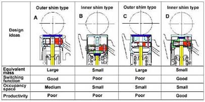 S ohledem na konstrukci mechanismu uvnitř zdvihátek bylo zvažováno několik řešení se snahou vyvinout jednoduchý a spolehlivý mechanismus. Spolu s tím vyvstalo několik otázek. Co udělat s podložkou, která se používá pro vymezení ventilové vůle? Jak vyřešit vzájemný pohyb vaček a ventilových dříků v okamžiku, kdy jsou ventily odpojeny? Studie vyústila do čtyř variant.