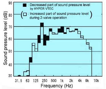 VTEC motor také vykazuje nižší hlučnost v režimu, kdy pracuje jen jeden pár ventilů. Podle frekvenční analýzy hluku jedoucího vozidla, dochází k redukci o 2 – 5 dB ve srovnání s klasickými motory, zejména v hluku sání a výfuku s frekvencí pod 1 kHz. Při měření hluku zrychlujícího vozidla metodou EEC87/56 došlo ke snížení hluku o 1,7 – 2 dB při jízdě na druhý a třetí převodový stupeň a to i přes zvýšení rychlosti o 10 – 15 %.