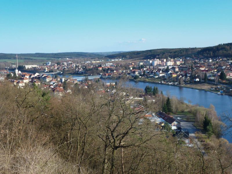 Cestou k soutoku mínete také rozhlednu Semenec, odkud se vám naskytne pohled na Vltavu, město i jadernou elektrárnu Temelín.
