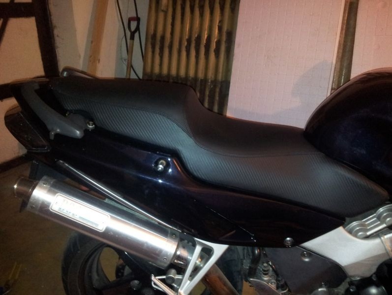 Lukáš: Nechal jsem si přešít sedlo loni. Projel jsem nějaká fóra a nejdříve byl rozhodnut, že si to nechám udělat v DD Tuning Mohelno, jako většina lidí. Pak jsem se tomu ale začal věnovat víc a na nějakém fóru narazil na doporučení na čalouníka v Praze - Zbraslavi . Dotyčnému jsem tedy zavolal a sjednal si návštěvu. Už když jsem přišel k němu do garáže jsem z toho měl dobrý pocit, všude krásně čisto, srovnáno (což i pak odpovídalo jeho preciznosti), zaparkovaná motorka... prostě krásná čistá dílna